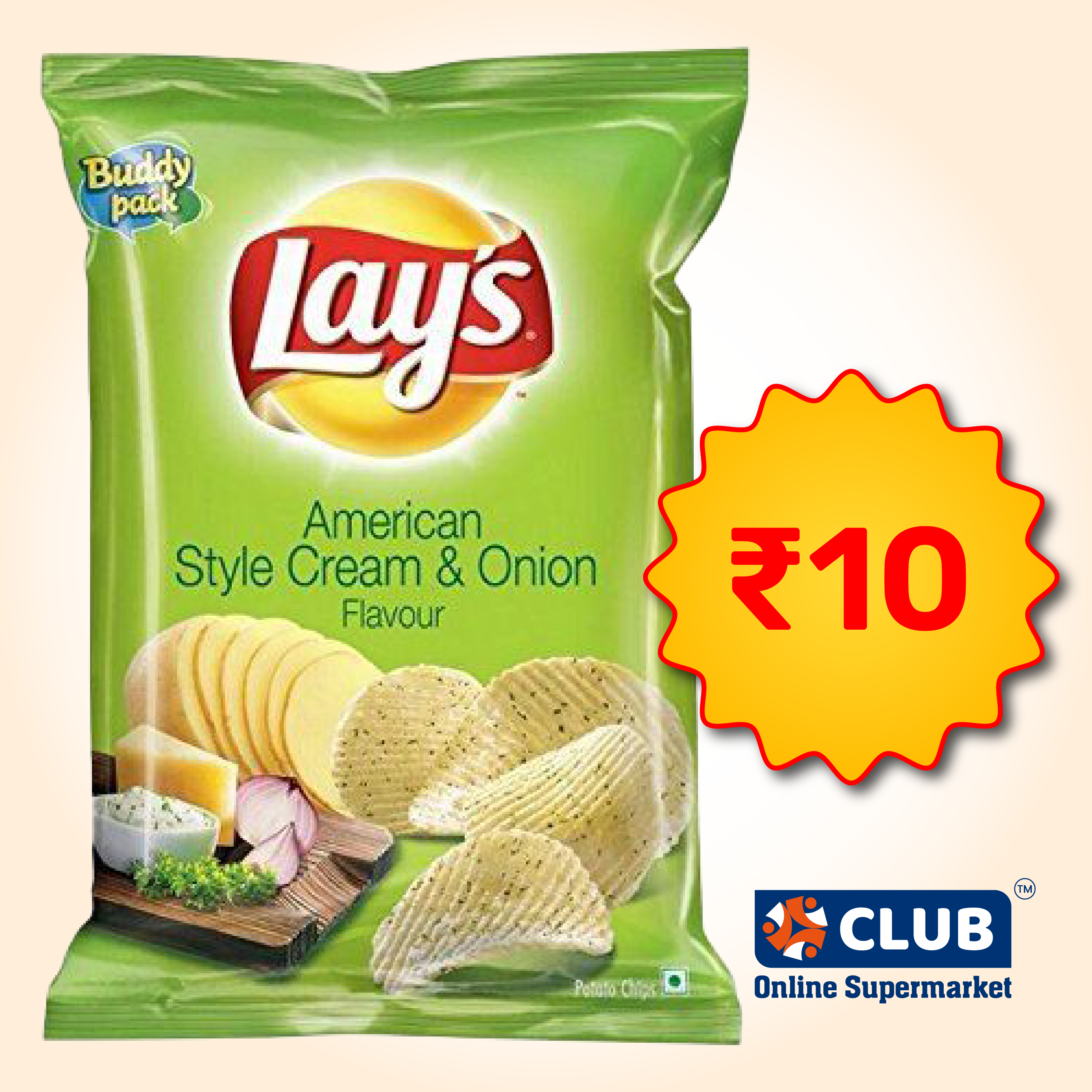 Lays (Rs. 10) Potato Chips - American Style Cream & Onion, 18.5g
