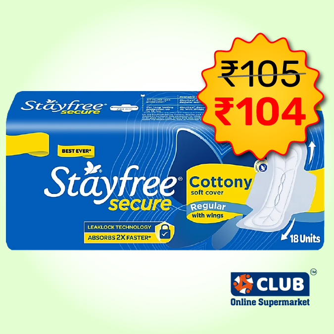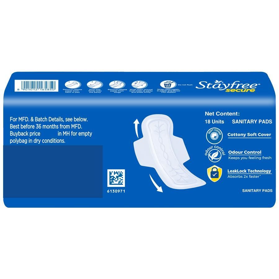 Stayfree Secure Cottony Soft Sanitary Pads - Regular Wings, 18pc