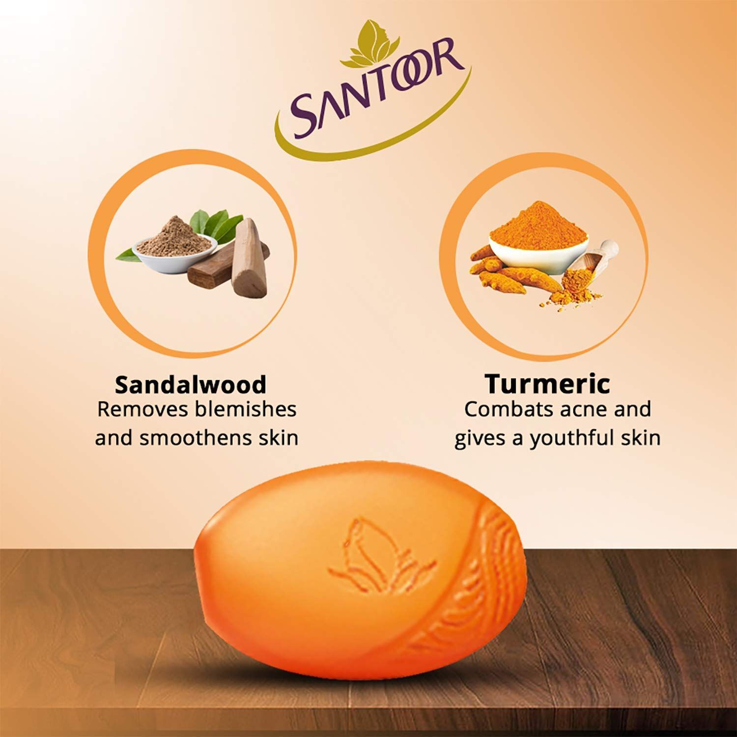 Santoor Orange Soap - Sandal & Turmeric, 100g